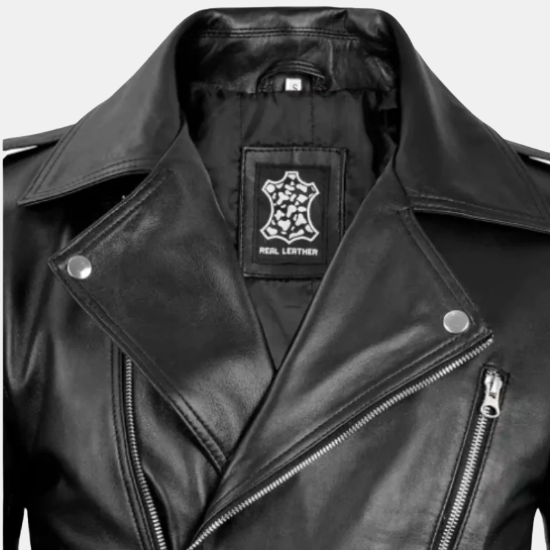 With a contemporary touch, the jacket has a traditional biker design. Offering a tailored fit that suits your body form, the belt detail improves the silhouette. Timeless, the black leather jacket biker style fits all seasons and several events. This jacket offers just the right mix of style and use whether you want a moto leather jacket or a traditional black biker leather jacket.