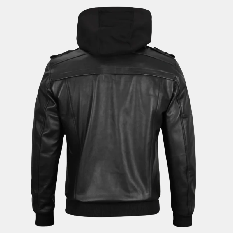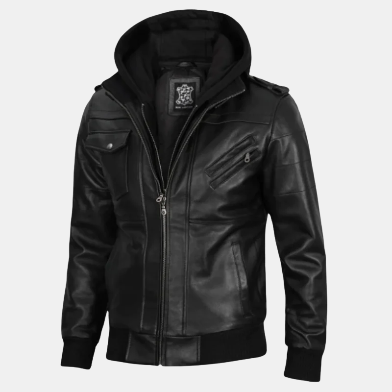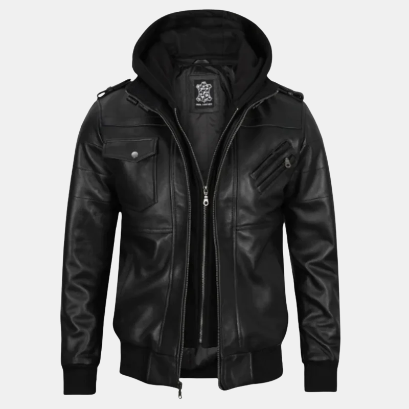 Men’s Black Leather Moto Jacket with Hoodie The Perfect Blend of Style and Comfort
