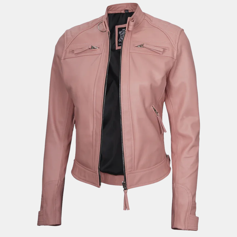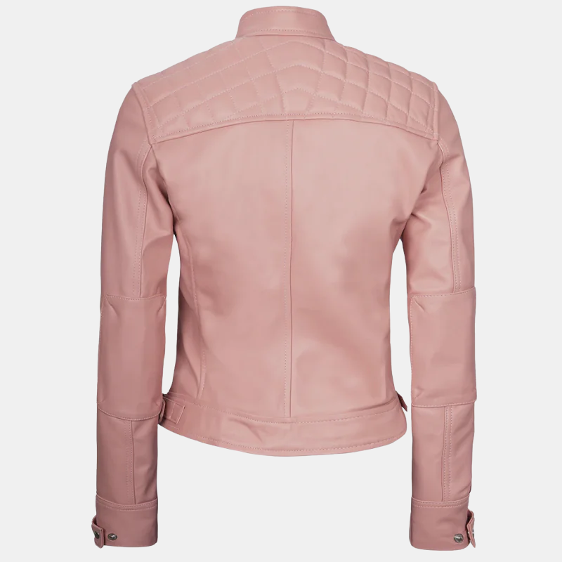 I’ve been searching for a pink leather biker jacket for a long time, and I’m so glad I finally found this one! The quality of the leather is impeccable, and the diamond stitching gives it a sleek, sophisticated vibe. The jacket fits beautifully and feels comfortable whether I’m on my bike or just running errands. I love how it adds a little bit of boldness to my wardrobe without being over-the-top. It’s a bit of a splurge, but definitely worth the price. Highly recommend
