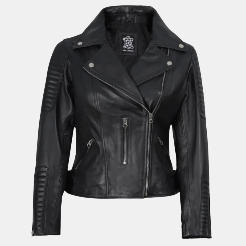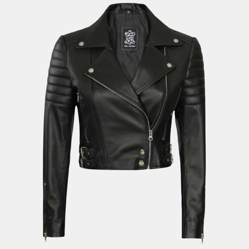 Women’s Black Cropped Leather Moto Jacket A Stylish & Edgy Look